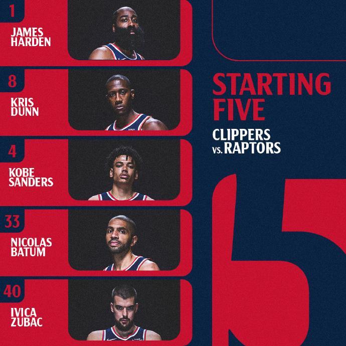 快船核心莱昂纳德因伤缺席无缘战旧主,老将巴图姆顶替莱昂纳德位置首发,快船还缺少琼斯、比尔与博格丹,猛龙缺少巴雷特、奎克利与珀尔特尔等。